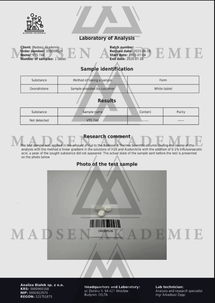 Oxandrolone – EOQ Remedies – Batch Nr. VTS744