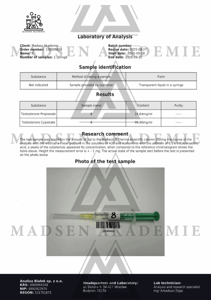 • Tatsächliche Zusammensetzung: Mischung aus Testosteron-Propionat + Testosteron-Cypionat