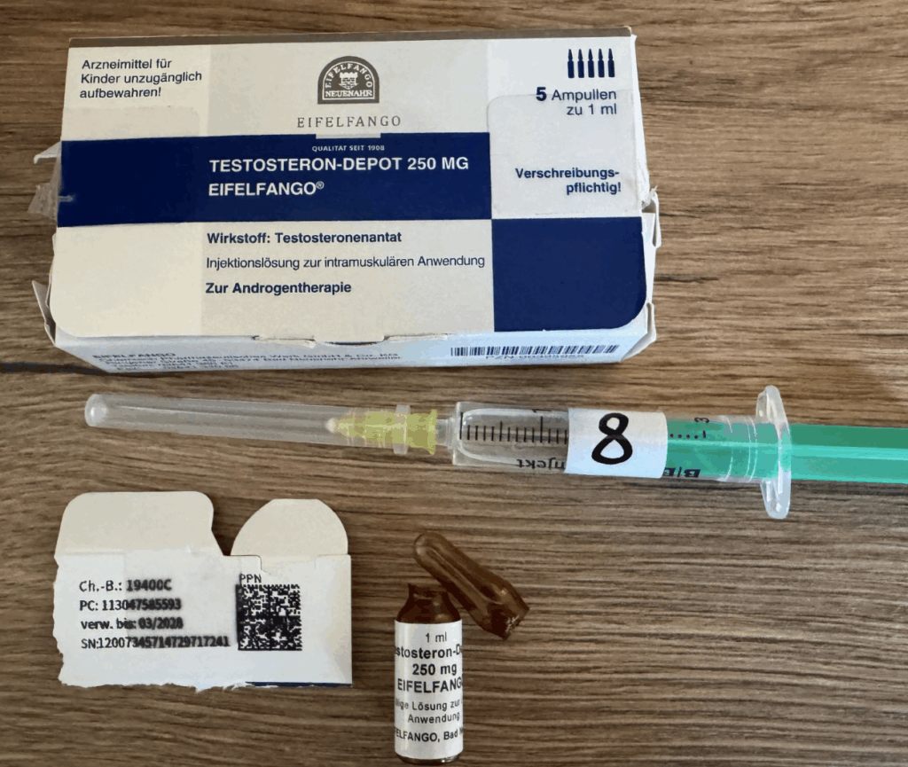 • Deklariert als „Testo E 250 mg/ml Eifelfango (Apothekenprodukt)“